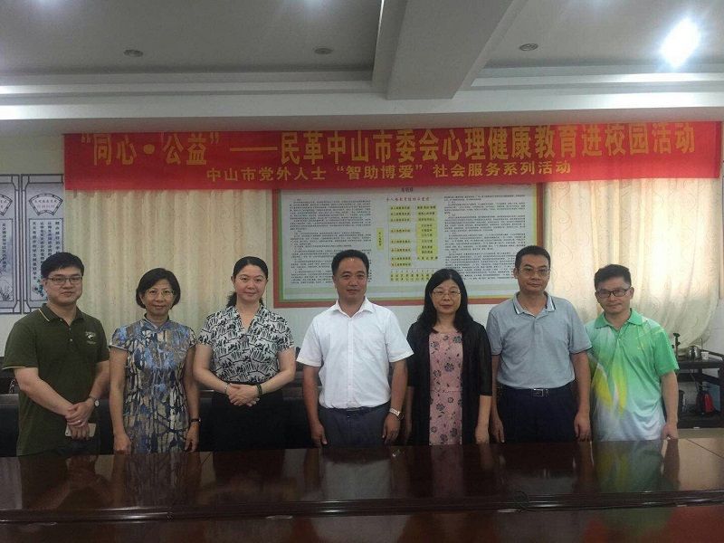 6月6日下午6点,中山民革社会服务工委的5位党员在市委会副主委梁惠群的带领下,来到了东升求实学校,开展“同心·公益”——民革中山市委会心理健康教育进校园活动,由党员陈美霞对150多名教师开设“管理压力拥抱幸福”的心理健康辅导讲座。