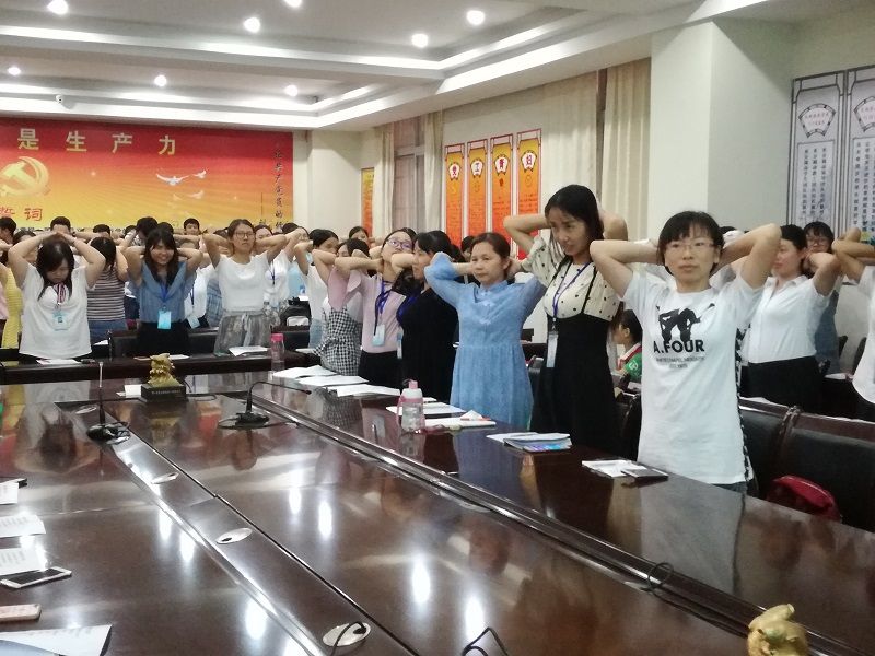 陈美霞老师是中山市第三届突发事件应急管理专家库成员、中学高级教师、国家二级心理咨询师、高级健康管理师、亲子沟通培训师。授课中,她首先进行现场健康测试,了解老师们的压力情况,然后有针对性地从8个方面详细讲述如何有效应对压力。她通过自己20多年来教学沉淀出的智慧,用身边一个个鲜活的例子和优雅动容的身体语言,打动老师们的心,感染着在座的每位老师;她设计几个体验活动,让老师们感受着虽然在生活中、工作中会遇到不同的压力,但还是有能力做到与“鸭梨大叔和平共处”、拥有健康幸福人生的人生真谛。老师们非常投入、积极参与讲座中,并对陈老师的精彩授课报以热烈的掌声。