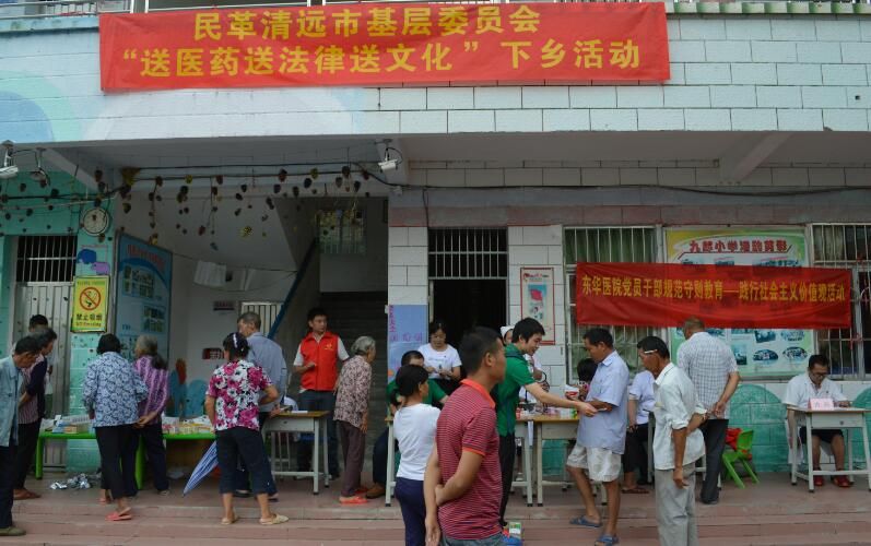7月12日,民革清远市基层委员会市直二支部联合英德东华镇医院赴九朗乡开展“送医药送法律送文化”下乡活动。
